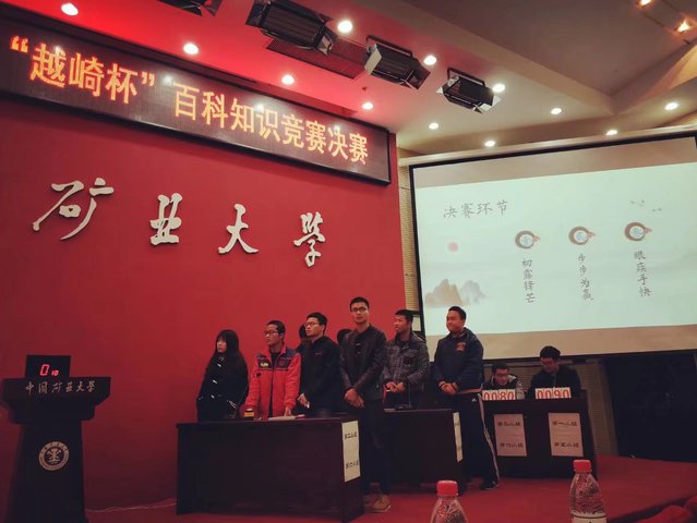 为纪念一二·九爱国运动82周年、孙越崎先生诞辰124周年,12月10日下午2点30分,由中国矿业大学图书馆、共青团中国矿业大学委员会主办,孙越崎学院学生会、中国矿业大学读书协会承办的中国矿业大学第九届“越崎杯”百科知识竞赛决赛在图书馆报告厅举行。中国矿业大学图书馆馆长宋迎法教授、孙越崎学院团委书记卫慧芳老师、来自我校各个学院的200余名参赛选手和学生代表参加了本次活动。