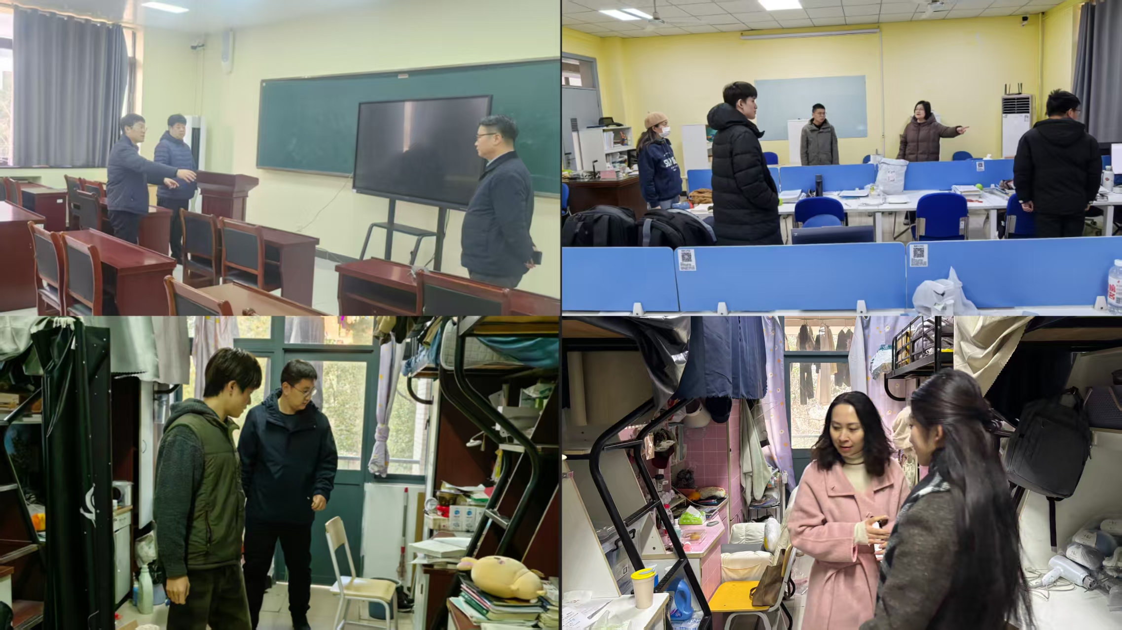 12月11日,在王亮带领下,副院长吴从新,党总支副书记兼副院长史强等深入学生研讨空间、办公室及会议室等,开展了全覆盖学生公共空间管理情况安全专项检查。针对检查中发现的安全隐患和需要改进的问题,院领导现场督导隐患整改,并对下一步安全检查进行部署。