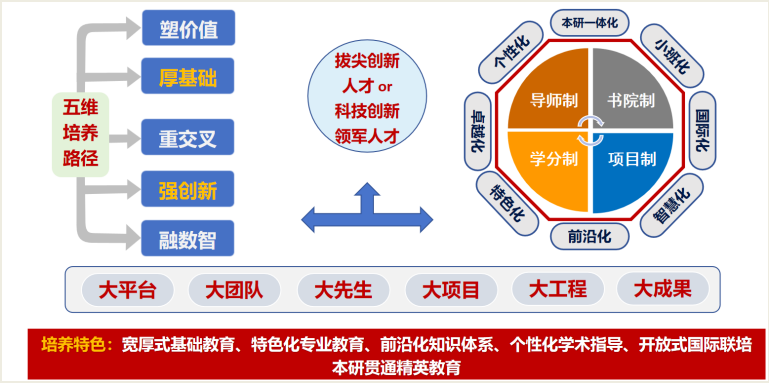 学院紧扣“五维”目标,依托“四制”支撑推动“八化”转型,构建全链条拔尖人才育人闭环。以“IGNITE计划”为引擎,贯通育人环节,同步修订培养方案、强化核心课程与教学质量建设,系统化推进拔尖人才培养模式改革,成效显著。思想引领与学风建设方面,深化导师制提质升级,高标准新聘入库导师,探索系统化管理,建立低、高年级分层导师配置机制,兼顾学业、思想引领与学风塑造;推进书院制建设,打造师生共融浸润式场景,推动课程思政与品牌活动深度融合,筑牢拔尖学子服务“国之大者”的根基。平台与体系建设上,依托1项省教改重中之重项目、1项专项课题,健全院本荣誉体系,设计智慧化管服体系,打破学科学段壁垒,融合四制优势构建协同培养体系,重点推进育人平台建设,集聚优质资源、贯通五大渠道,健全“教产研用”生态,打造多元拔尖培养矩阵与校内外一体化基地。同时,深化安科国创班、未来技术学院等不同周期、类型的培养路径探索,持续优化方案,拔尖人才自主培养能力与质量全方位提升,升学人数与就业质量双创新高。