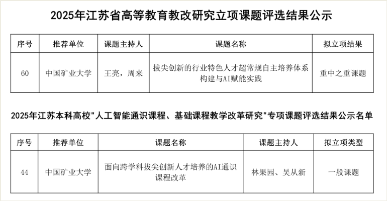图5学院获批2025年江苏省教改重中之重项目和专项课题共2项