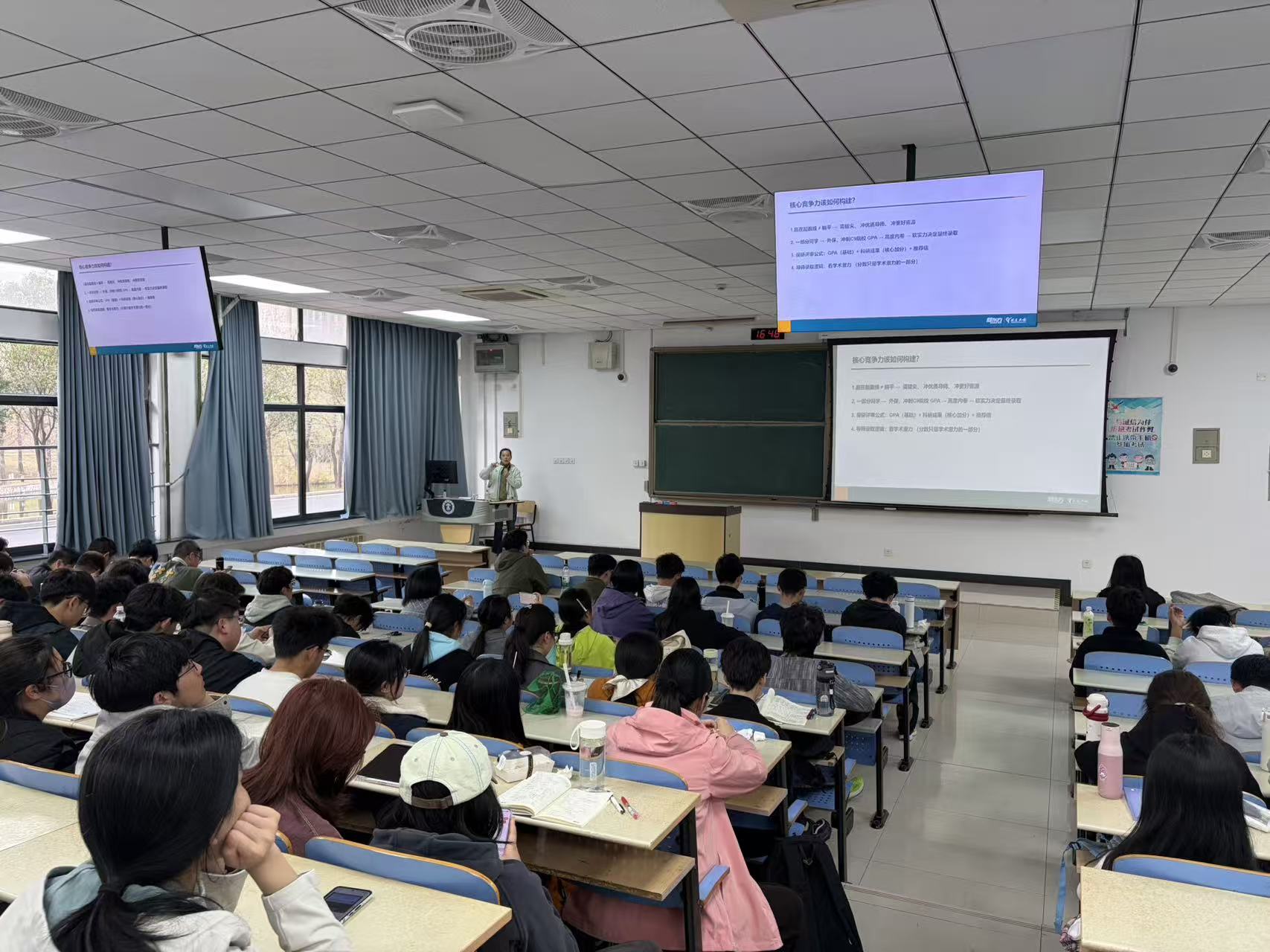 陈岑则聚焦工科生及文科生3-4年科研实习规划,结合我院大类专业特点,为同学们梳理大学期间可参与的科研项目、实习实践与背景提升路径,针对性指导如何将专业学习与科研实践结合,为后续开展海外研修、出国留学、保研及职业发展积累核心竞争力,助力同学们提前规划大学生涯成长节奏。