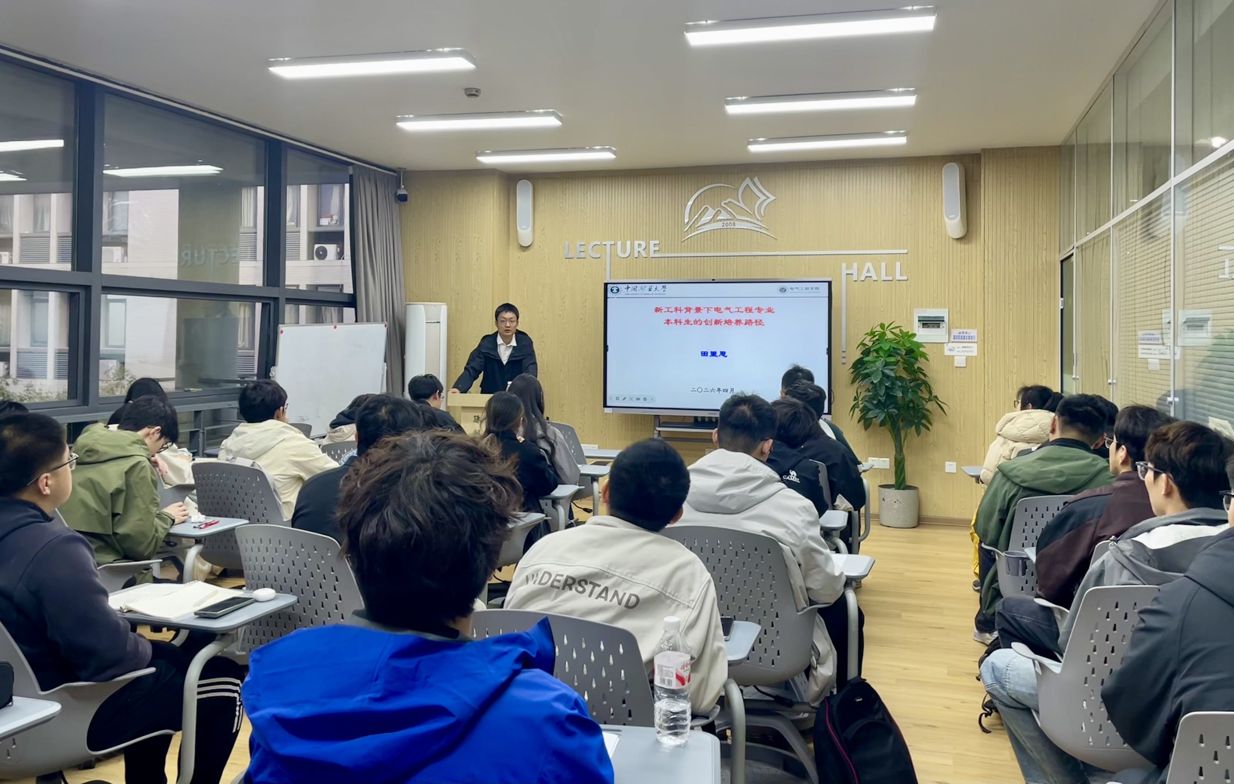 讲座中,田里思以介绍电气学科为切入点,细致解读了自动化在电气工程中的重要作用及研究领域,为学生明晰学习与就业方向。围绕“创新培养路径”,他阐述了新工科产教融合、企业全方位参与的要求,强调实践在学习中的重要性。同时,他寄语学子:成绩不是衡量个人能力的唯一标尺,良好的人际交往能力同样是立足社会、实现成长的必备素养。