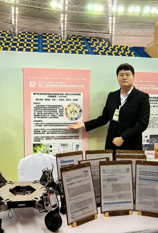 孙豪志,孙越崎学院机械工程专业2023级本科生,获2025年中国矿业大学特等奖学金。主持4项国家级/省级大学生创新训练计划,发表/投稿包括中科院一区TOP期刊在内的学术论文5篇,授权/申请专利10项。荣获包括中国国际大学生创新大赛在内的国家级/省部级奖项22项,主持的太空采矿项目获央视报道。