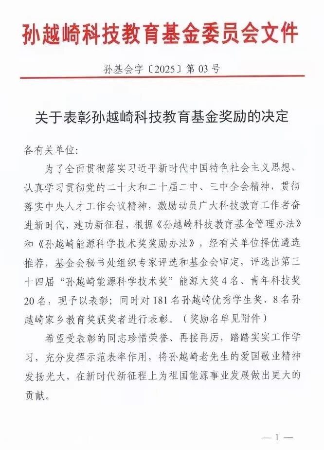 据悉,“孙越崎科技教育基金会优秀学生奖”是由孙越崎科技教育基金委员会设立,旨在促进中国能源科技教育事业的繁荣和后备人才的成长,激励煤炭、石油高等校学生发奋读书,刻苦钻研。