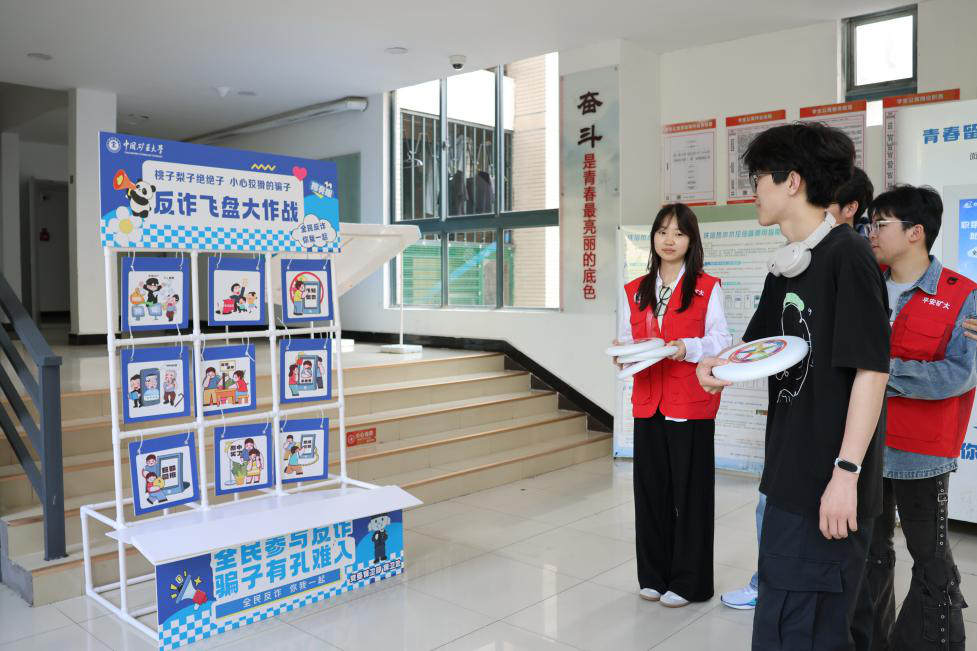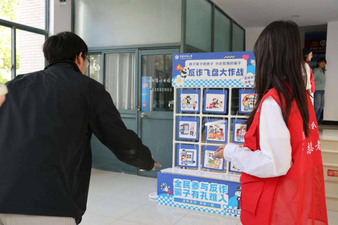 活动现场设置了多个趣味互动区域。在“反诈飞盘大作战”游戏区,参与活动同学向标有“刷单诈骗”“冒充客服”“交友投资”等常见诈骗类型的靶盘投掷飞盘,命中相应区域后,滕老师结合真实案例进行了详细讲解。“反诈沙包大作战”则模拟“陌生链接”“可疑转账”等诈骗场景,参与同学在互动中掌握了识别和应对诈骗的技巧。此次活动打破传统宣传模式,以趣味互动提升了同学们的反诈防骗意识。学院将持续创新宣传形式,凝聚“全民反诈”合力,共同筑牢校园及学生社区反诈防线,守护好师生财产安全。